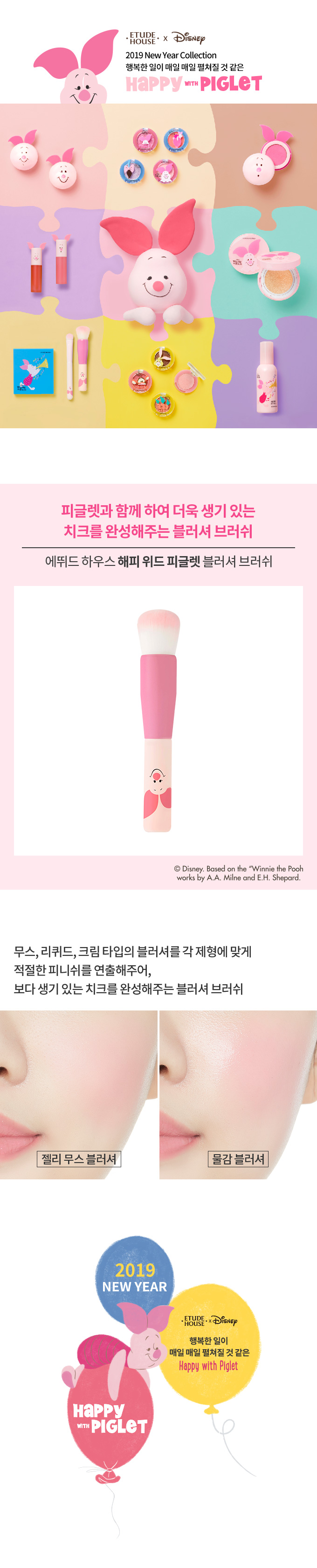 限量迪士尼小豬系列,胭脂專用掃掃毛軟滑,為雙頰打造貼服的自然好氣息。